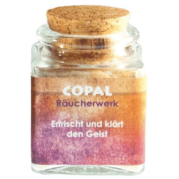 Inhalt: Copal, rein; 50 ml-Gläschen mit natürlichem Korkverschluss