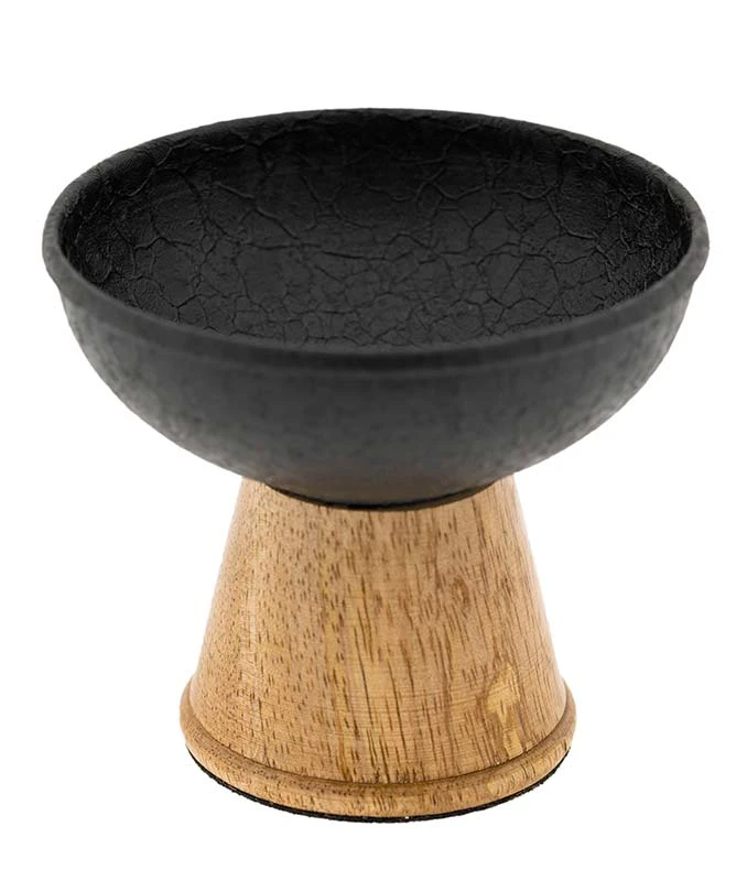 Räucherkelch von schlichter Eleganz. Pulverbeschichtetes Eisen mit Fuss aus Mangoholz.