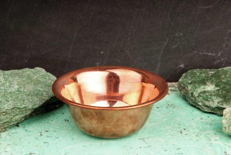 Dieses leichte Kupferschälchen wird in den östlichen Ländern vorwiegend als Phuja Schälchen verwendet. Ein Phuja ist eine Zeremonie an verschiedene himmlische Kräfte. Zu deren Ehren werden kleine Früchte, Zuckerstückchen oder auch Wasser in die Schälchen gefüllt. Da Kupfer desinfektionierende Eigenschaften vorweist und nach Gold am höchsten schwingt, ist dieses Schälchen besonders für Rituale aller Art geeignet. Zum Beispiel für ein Naturgeisterritual, bei dem man den Elfen und Feen ein Schälchen mit Milch oder Honig darbietet.