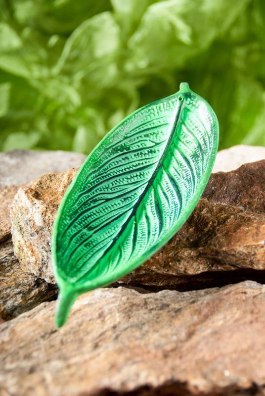 Ein eleganter Räucherstäbchenhalter mit Blattrelief. Ein zauberhafter Blickfang für jedes Ambiente.