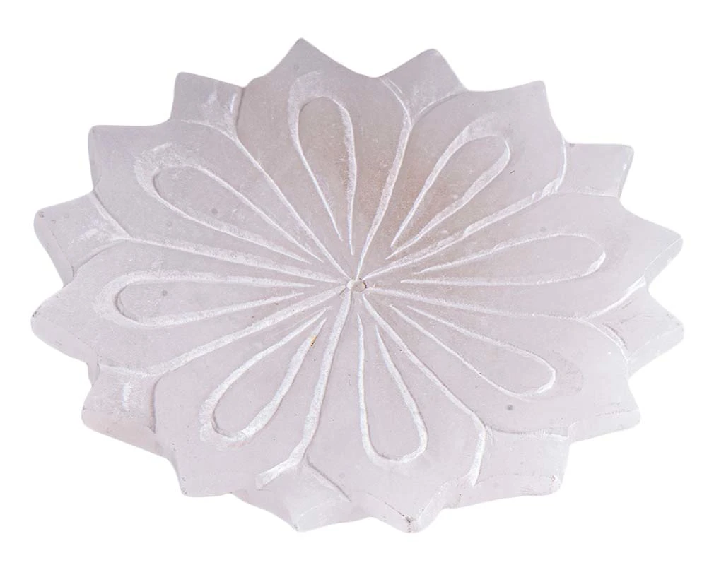 White Lotus AlabasterhalterEin aussergewöhnlich schöner Halter! Anmutig und formschön veredelt er unsere Räucherung mit Stäbchen. Alabaster steht für geistige Stabilität, der Lotus für die Transformation hin zur Vollkommenheit. Handgeschnitzt.10cm, Alabaster