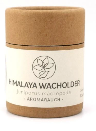 Dieser Räucherstoff enthält 50 ml Wachholder Himalaya in kleiner Kartonrunddose mit Deckel.