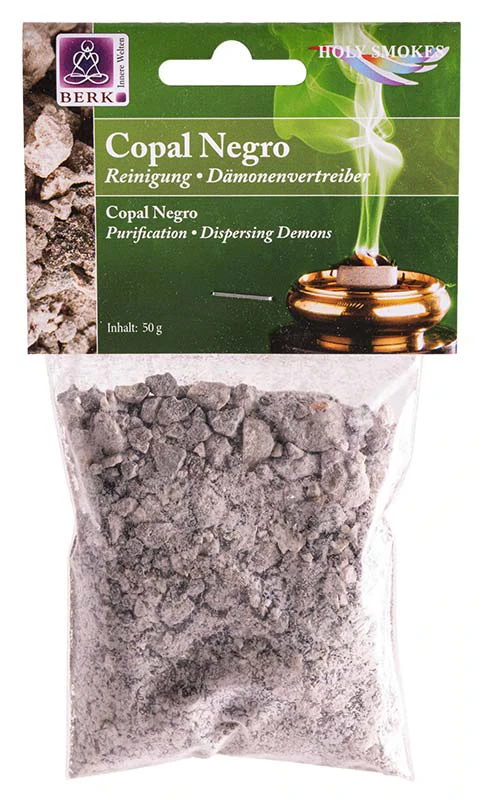 Schwarzer Copal ist ein starker Atmosphärenreiniger. Er verscheucht alle festsitzenden, negativen Energien und zieht gleichzeitig positive und lichtvolle an. Er wurde von den Schamanen Südamerikas vor rituellen Anbetungen verräuchert. Er erdet, reinigt, schützt und öffnet die Tore in andere Welten gleichermassen. Sein Duft ist eher schwer, würzig und doch erfrischend.