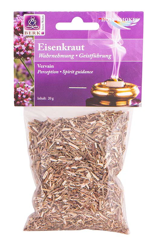 Jedes Räucherwerk wirkt auf verschiedenen Ebenen. Auf jedem Tütchen der Räucherwaren von Berk finden Sie eine ausführliche Anleitung. Die Hauptwirkung von Eisenkraut ist Wahrnehmung.