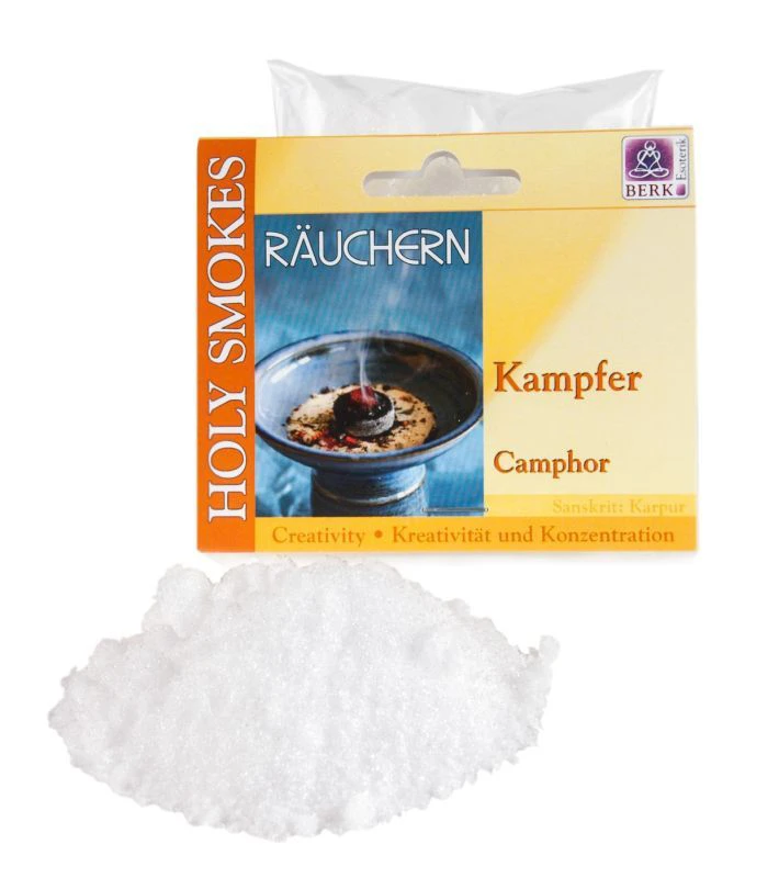 Jedes Räucherwerk wirkt auf verschiedenen Ebenen. Auf jedem Tütchen der Räucherwaren von Berk finden Sie eine ausführliche Anleitung. Die Hauptwirkung von Kampfer ist Konzentration.