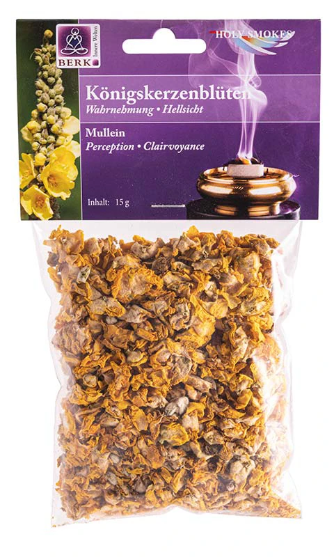 Jedes Räucherwerk wirkt auf verschiedenen Ebenen. Auf jedem Tütchen der Räucherwaren von Berk finden Sie eine ausführliche Anleitung. Die Hauptwirkung von Königskerze ist Wahrnehmung.