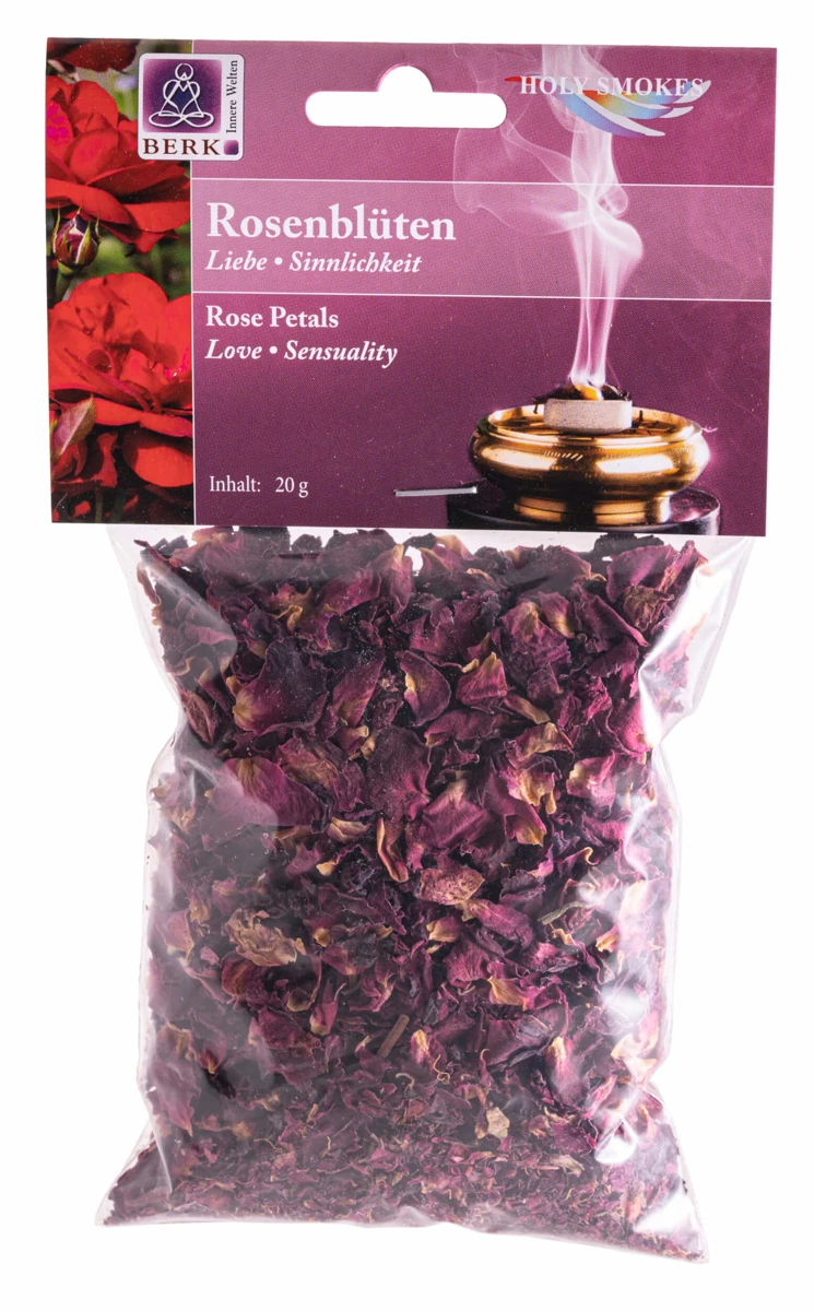 Jedes Räucherwerk wirkt auf verschiedenen Ebenen. Auf jedem Tütchen der Räucherwaren von Berk finden Sie eine ausführliche Anleitung. Die Hauptwirkung von Rosenblüten ist Liebe.