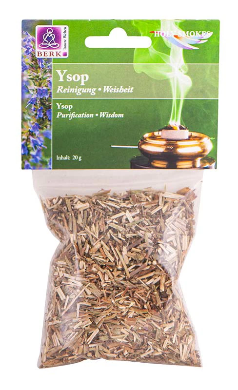 Jedes Räucherwerk wirkt auf verschiedenen Ebenen. Auf jedem Tütchen der Räucherwaren von Berk finden Sie eine ausführliche Anleitung. Die Hauptwirkung von Ysop ist Reinigung.