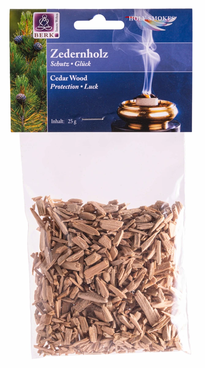 Jedes Räucherwerk wirkt auf verschiedenen Ebenen. Auf jedem Tütchen der Räucherwaren von Berk finden Sie eine ausführliche Anleitung. Die Hauptwirkung von Zeder ist Schutz.