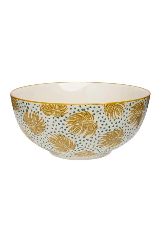 Filigranes, handgestempeltes Muster trifft auf klassische Form bei unserer Salatschüssel Boho Chic. Die schicke Keramikschüssel setzt Highlights auf deinem Tisch und lässt dich kalte und heisse Speisen mit Stil servieren. Kombiniere beide Farbkombinationen der Salatschüssel Boho Chic miteinander und bring damit noch mehr gute Laune in deinen Alltag.