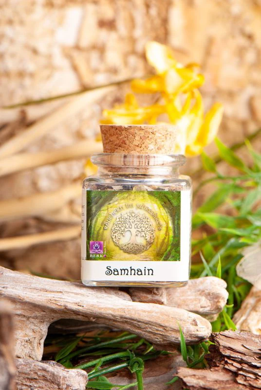 Die Räuchermischung Samhain ist die Jahreskreis-Räucherung für die Nacht vom 31. Oktober auf den 1. November. An Samhain endet das alte und beginnt das neue Jahr. Es ist auch ein Fest der Ahnen. Man sagt, in dieser Nacht ist der Schleier zur Geisterwelt besonders durchlässig. Diese magische Nacht können wir nutzen um unsere Ahnen zu ehren, sie um Unterstützung zu bitten oder aber auch um Themen in der Ahnenlinie zu verabschieden und loszulassen. Diese Räucherung hilft den Schleier zu lüften und mit unseren Ahnen in Kontakt zu treten. Die Atmosphäre wird gereinigt und ein Schutzschild geschaffen damit nicht allerlei sonstige Gestalten hindurchschlüpfen.
