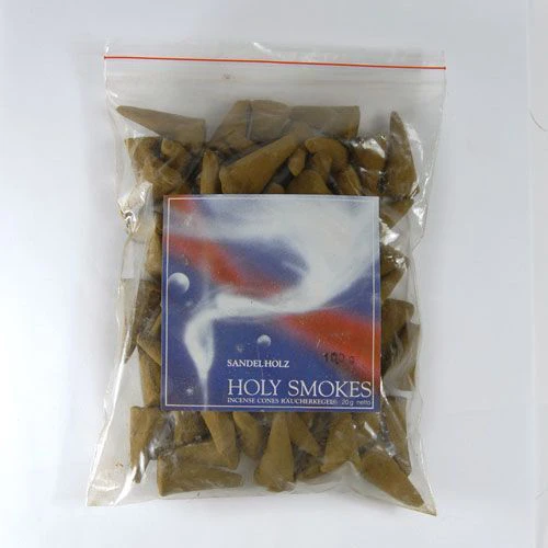 Die Holy Smokes Räucherkegel werden liebevoll in einem Ashram in Indien hergestellt. Hölzern, Harzen, Kräutern, Blüten und Ölen werden vermischt, um die wohlriechende Masale-Paste zu kreieren. Aus dieser Paste werden von Hand zu die Räucherkegel geformt. Die fertigen Kegel trocknen dann noch schonend an der Sonne.