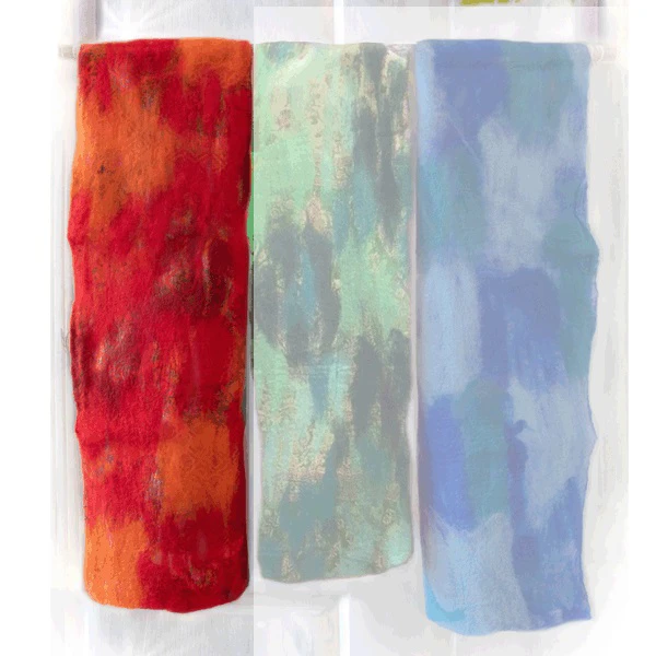 Der Sari-Filz-Schal Feenzauber in Rot ist wie aus einer Feenwelt entsprungen. Das schöne Tuch wurden aus upcycelten Seidensaris hergestellt. Auf den Saris wurde aufwändig die Wolle von Hand gefilzt, so dass der Sari wunderbar durchschimmert. Daher ist jeder Schal ein Unikat und kann in der Farbe etwas abweichen! Und ein Fair-Trade-Produkt zum Wohle vieler Familien in Nepal.