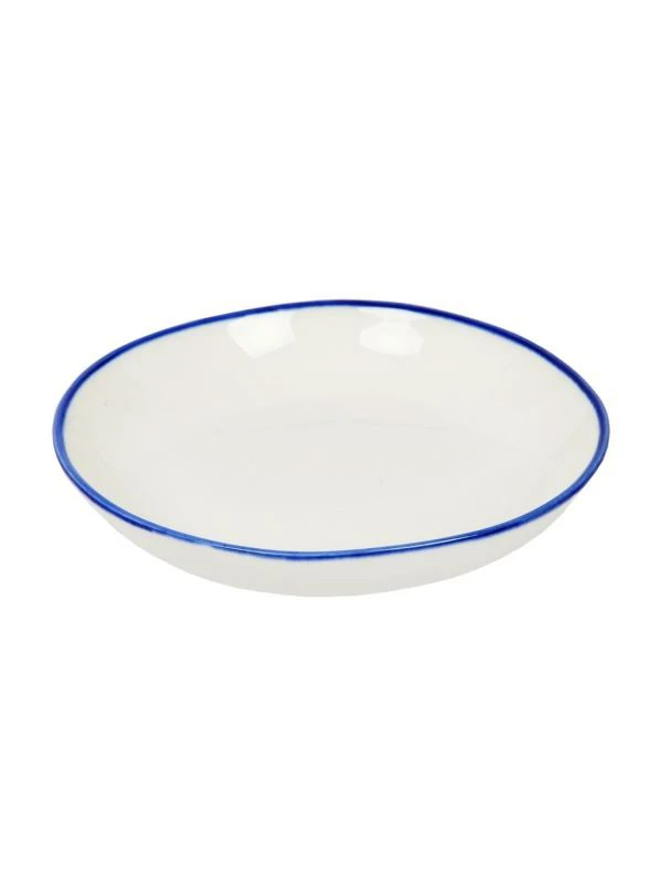 Mit diesem ästhetischen Schälchen CLASSIC des Dresdner Lifestyle Labels Tranquillo können Sie schöne Akzente auf Ihrem Esstisch setzen und sich und Ihre Gäste mit Köstlichkeiten verzaubern. Die Geschirrserie zeichnet sich durch ihre besondere, unregelmässige Form aus. Die blaue Färbung am Rand sorgt für einen dezenten Blickfang auf Ihrem Tisch. Das robuste Geschirr im klassischen Stil ist der Tranquillo Dauerbrenner und wird Sie und Ihre Gäste begeistern.