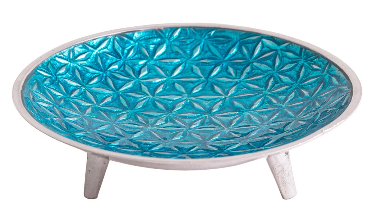 Einfach mit etwas Sand befüllen, eine Kohle darauf entzünden und schon kann die energetische Räucherung starten. Glasur mit Blume des Lebens nur auf sichtbarer Seite. Unterseite und Füsschen silbern.