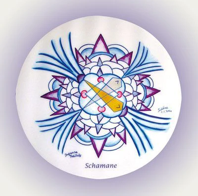 Das Mandala „Der Schamane"- ist ein starkes Schutzmandala gegen fremde, beeinflussende, negative Gedanken anderer Menschen. Wir alle sind solchen Gedanken täglich ausgesetzt und es erfordert eine ständige Präsenz in der Gegenwart, um solche Gedanken abwehren zu können.