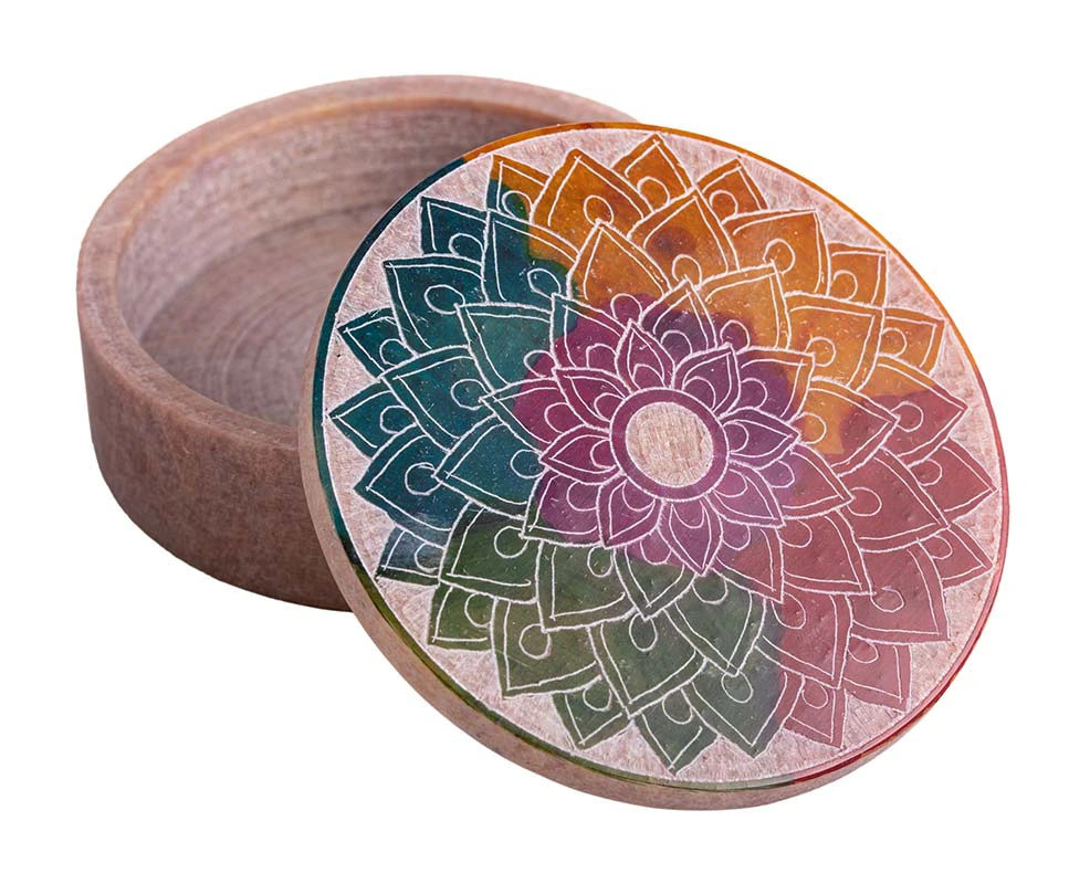 Aus Speckstein. Zum Aufbewahren von wichtigen kleinen Dingen. Von Hand graviert und bemalt.