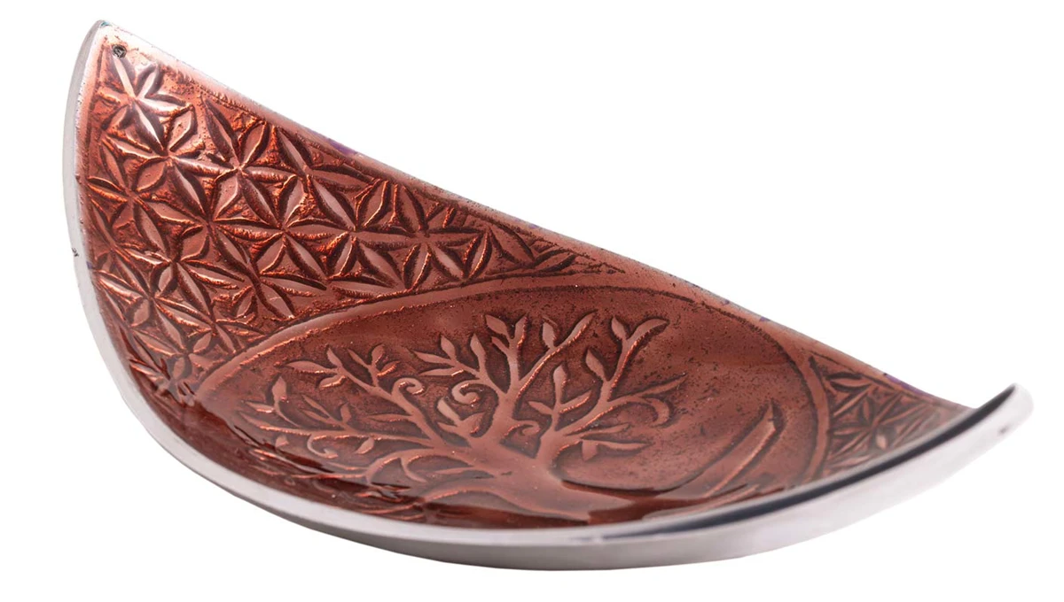 Herrliches, grosses Schiffchen mit Blume des Lebens und Yggdrasil Relief. Auf ihm kann man zwei Räucherstäbchen gleichzeitig anzünden oder auch eine Räucherung mit Kohle entfachen.