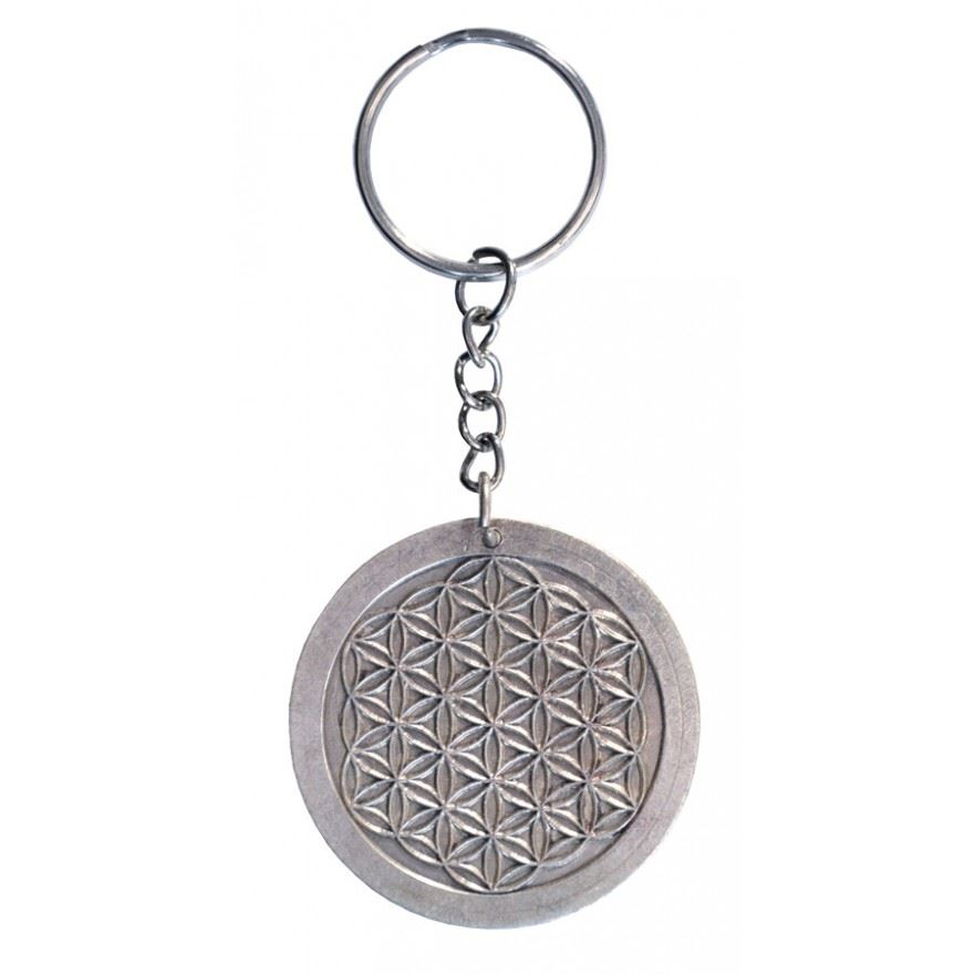 Dieser Schlüsselanhänger mit der Blume des Lebens ist aus verzinntem Kupfer gefertigt.