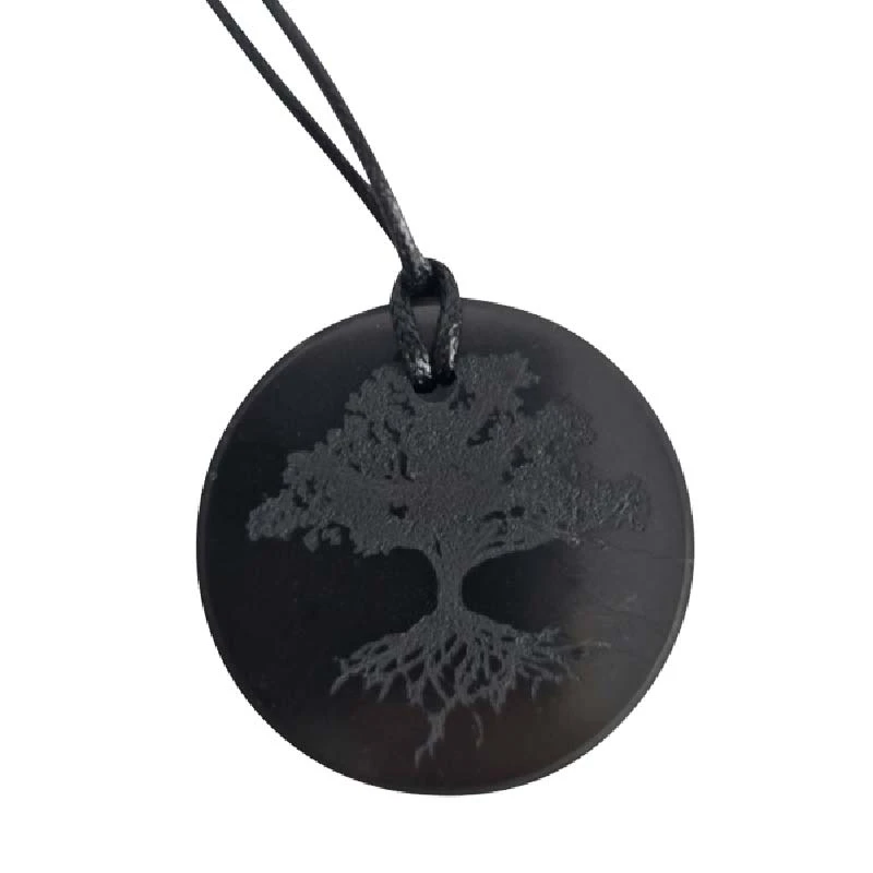 This pendant features a circular, flat disc with a hole drilled through it. In a silky matt black colour, this pendant gives every wearer a very special look. The genuine natural stone can be effortlessly attached to leather or silk straps and worn around the neck. The circle, as a symbol of perfection, wholeness and unity, is reflected in this piece of jewellery and thus becomes a daily companion as an expression of spiritual values. Due to its traditional use as a protective stone, shungite becomes a discreet yet extraordinary lucky charm and protective amulet.