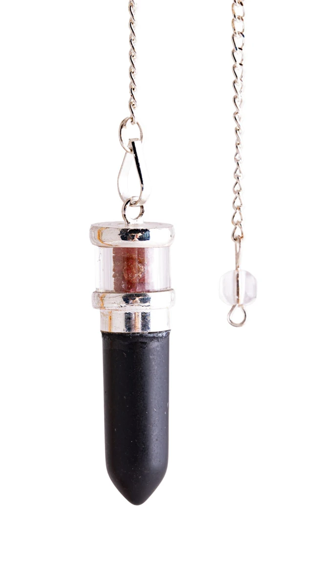 Das Schungit-Pendel verbindet die kraftvolle Wirkung des Schungits mit der feinstofflichen Arbeit des Pendelns. Die Pendel neutralisieren negative Einflüsse, harmonisieren elektromagnetische Strahlung und bieten Ihnen energetischen Schutz. Zusätzlich fördern sie Klarheit und Intuition bei spirituellen Fragestellungen durch ihre erdende Wirkung. Schungit-Pendel sind besonders pflegeleicht, da der Schungit über selbstreinigende Wirkung verfügt. Die Pendel sind ideal für energetische Tests, Chakra-Arbeit oder Raumreinigungen geeignet.