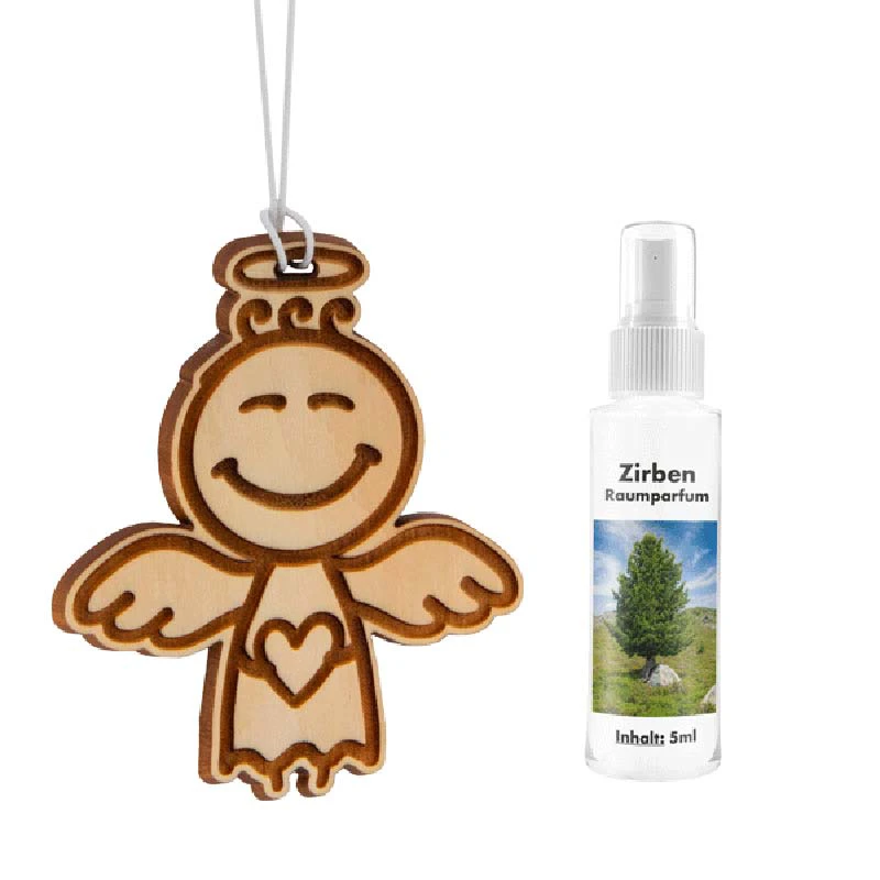 Set aus Anhänger und 5 ml Zirben-Raumparfüm.
