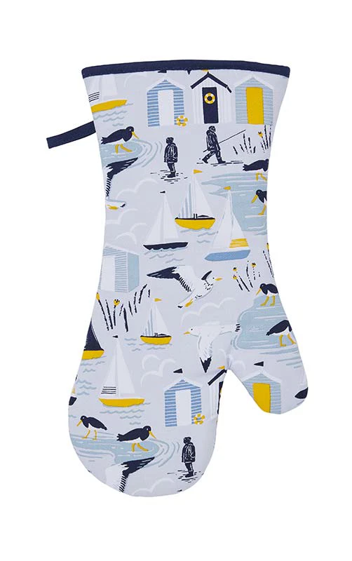 This beautiful Oven Gauntlet, part of the Seashore collection, inspires new narratives around the beach with its streamlined shapes in a nautical colour palette. Traditional linocut and block printing techniques have been explored to create this design, with water ripples and cloud formations giving life and movement to contrast the static beach huts. Available in a selection of designs, patterns and colours, all created by Ulster Weavers' in-house designers in Northern Ireland.