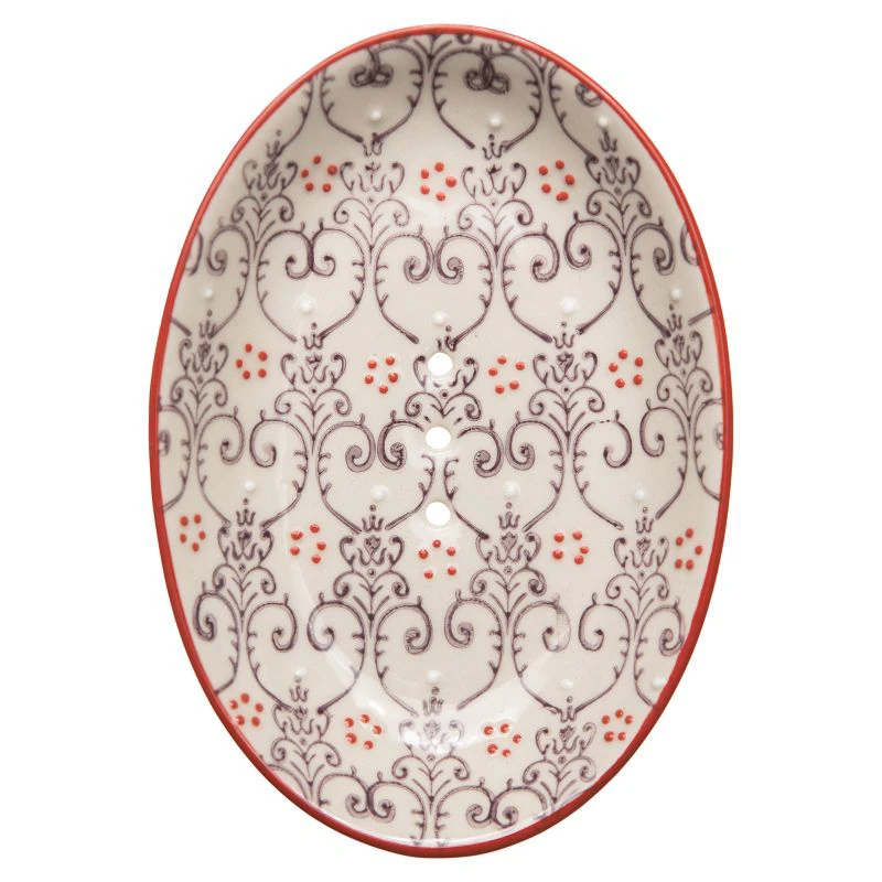 Sind Sie auf der Suche nach einem neuen Platz für die Aufbewahrung Ihrer Seife? Suchen Sie nach einem kleinen, aber feinen Blickfang in Ihrem Badezimmer? Dann entscheiden Sie sich für die schöne Seifenschale ORIENTAL des Dresdner Lifestyle Lable Tranquillo, ein trendiges und praktisches Badezimmer-Accessoire! Die dezenten, natürlichen Farben sind nicht zu grell, setzen aber dennoch einen freundlichen Akzent an Ihrem Waschbecken. Nicht zuletzt wegen des zarten, von Hand aufgetragenen Blumenmusters! Dieses besondere Finish macht jede unserer Seifenschalen zu einem echten Unikat.