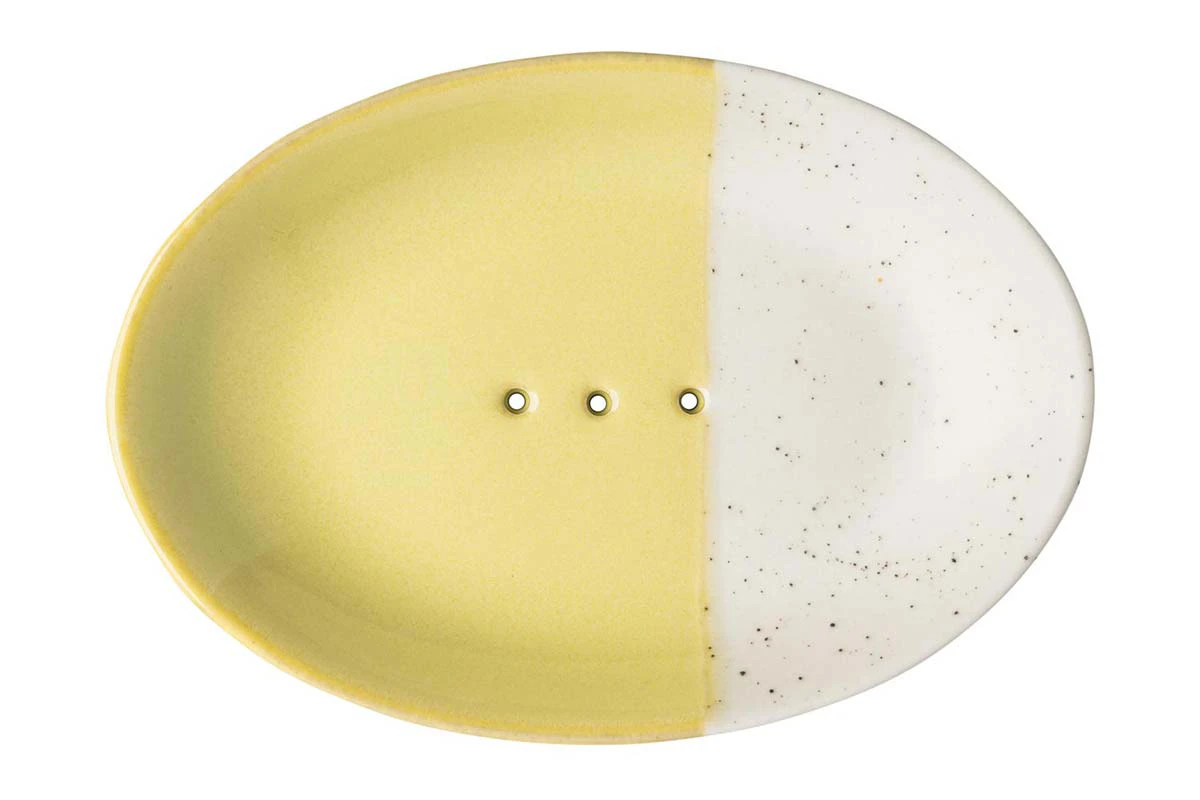 Diese hübsche Seifenschale in ovaler Form ist ein Highlight in deinem Badezimmer. Die schicke Kombination aus glänzender und rauer Glasur setzt deine Seife perfekt in Szene. Die kleinen Wasserablauflöcher sorgen dafür, dass deine Seife immer frisch und griffbereit bleibt. Entdecke auch die nachhaltigen Naturseifen von Tranquillo und verwöhne deine Hände und deinen Körper.