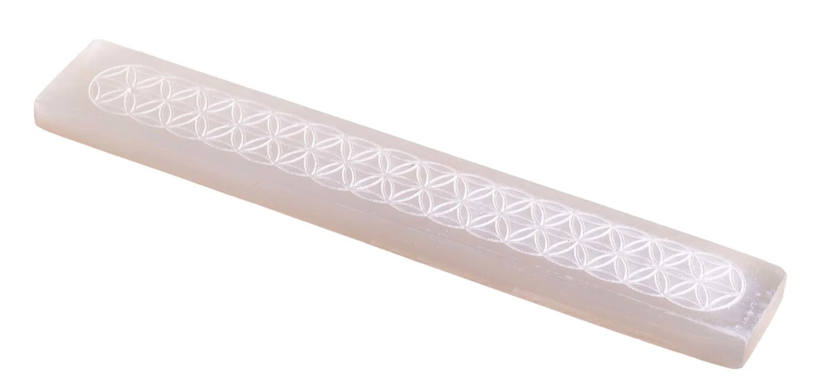 Mit eingravierten Lebensblumen. Die Kraft der Lebensblume unterstützt die lichtbringenden Eigenschaften des Selenits.