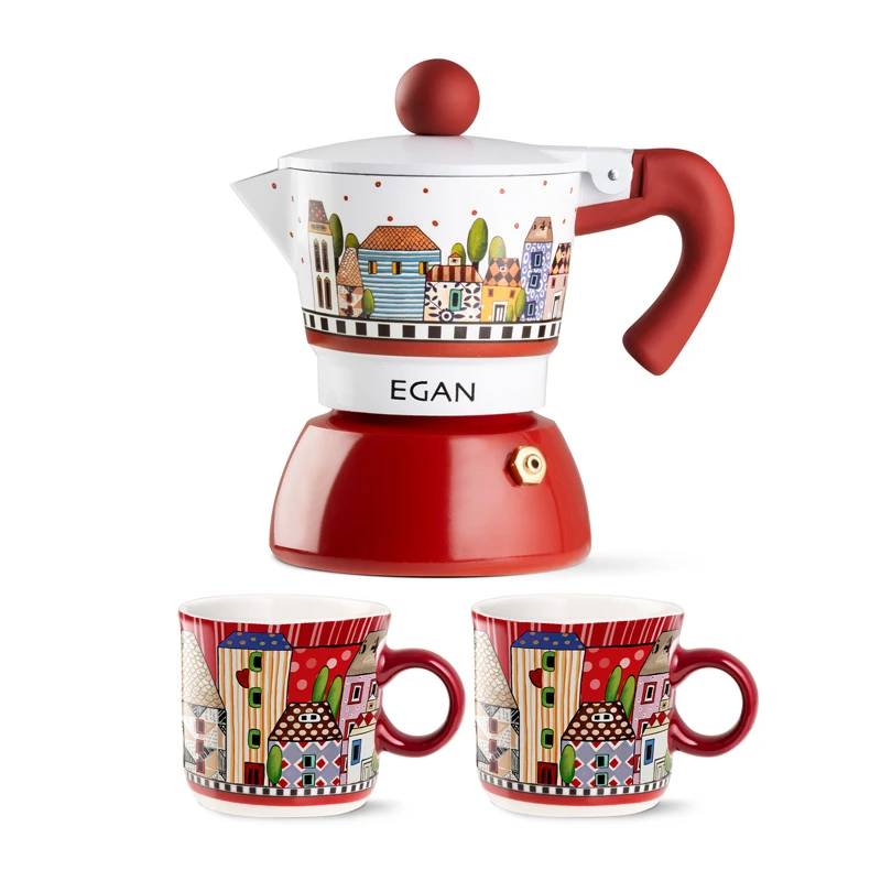 SET MOKA 2 CPS + 2 MINIMUG PAESE MIO RED