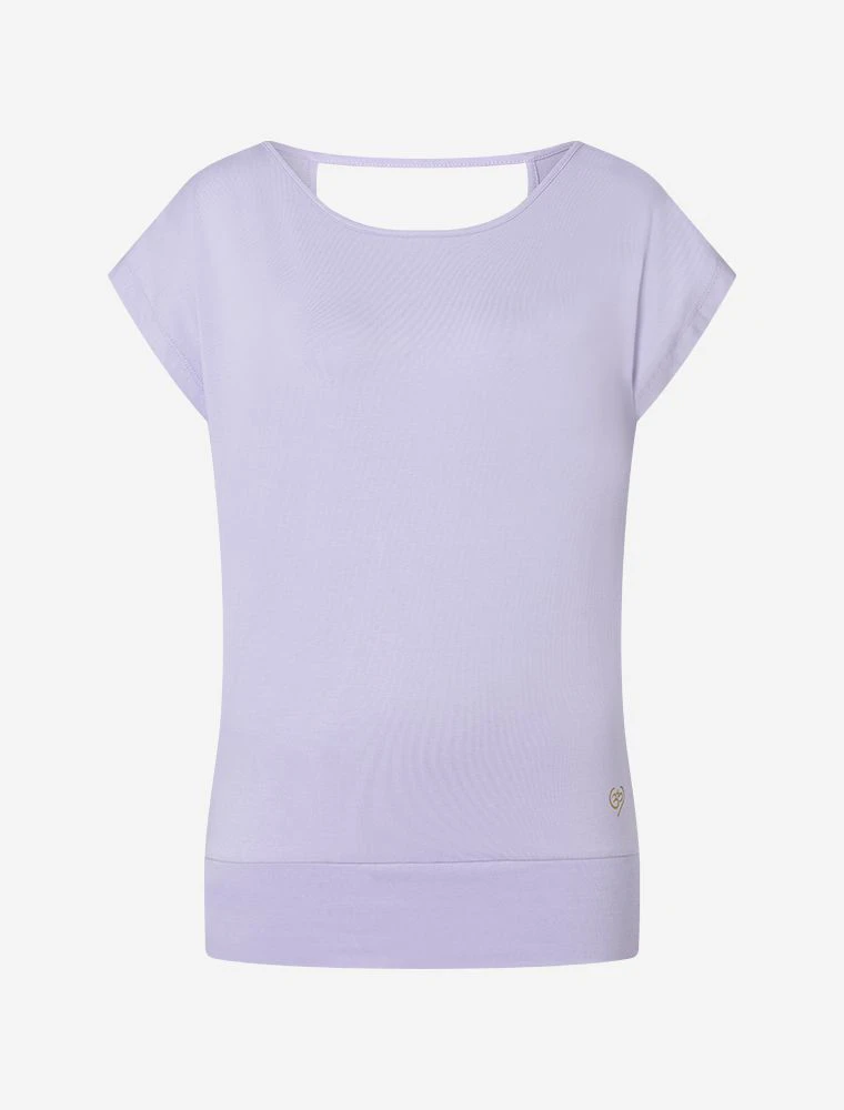 Ein raffinierter, offener Rückenausschnitt verleiht dem Shirt eine besondere Note, während ein feiner Golddruck mit OM-Symbol im Herz auf der Hüfte Ihre innere Ausrichtung unterstreichen.