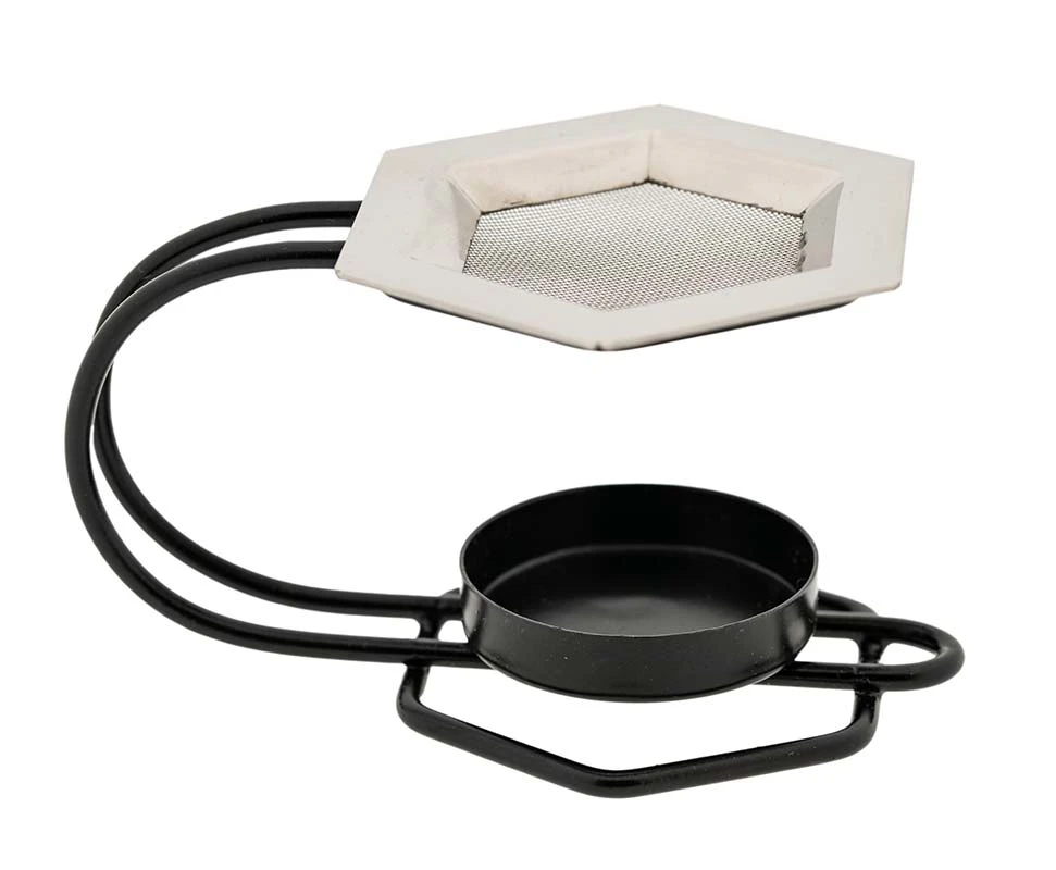 Eisen, pulverbeschichtet. Mit Edelstahlsieb H: 7,5 cm, L: 13 cm, B: 9 cm