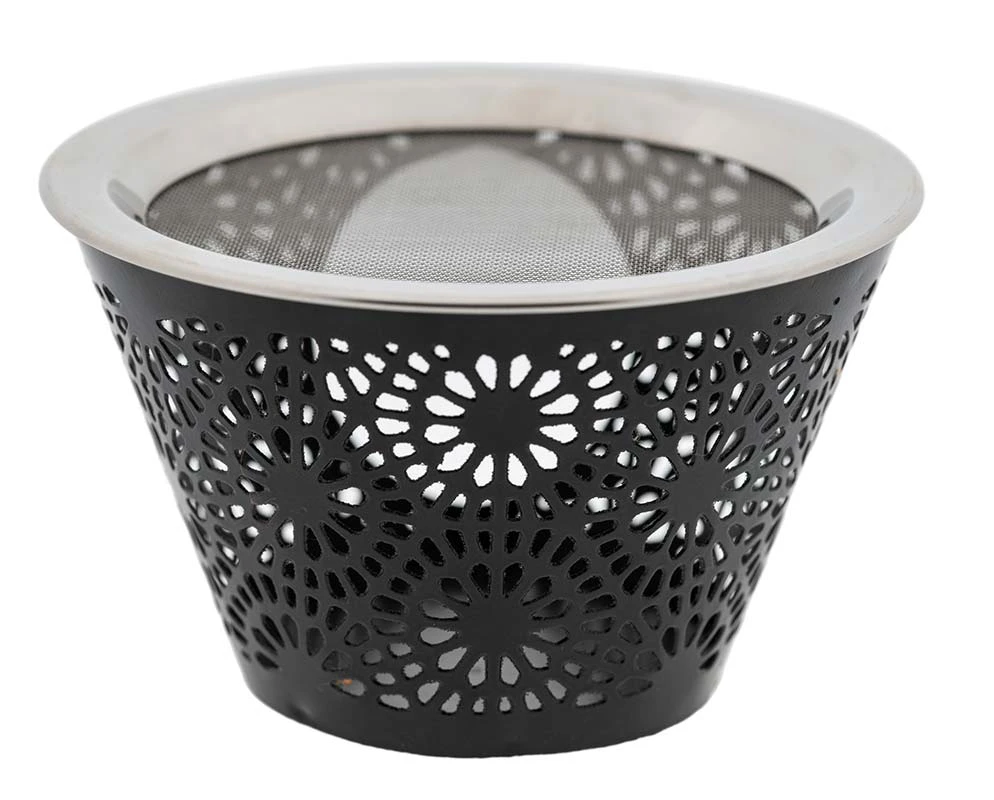 Edles Siebgefäss mit orientalischen Ornamenten aus pulverbeschichtetem Eisen mit 12,5 cm Edelstahlsieb.