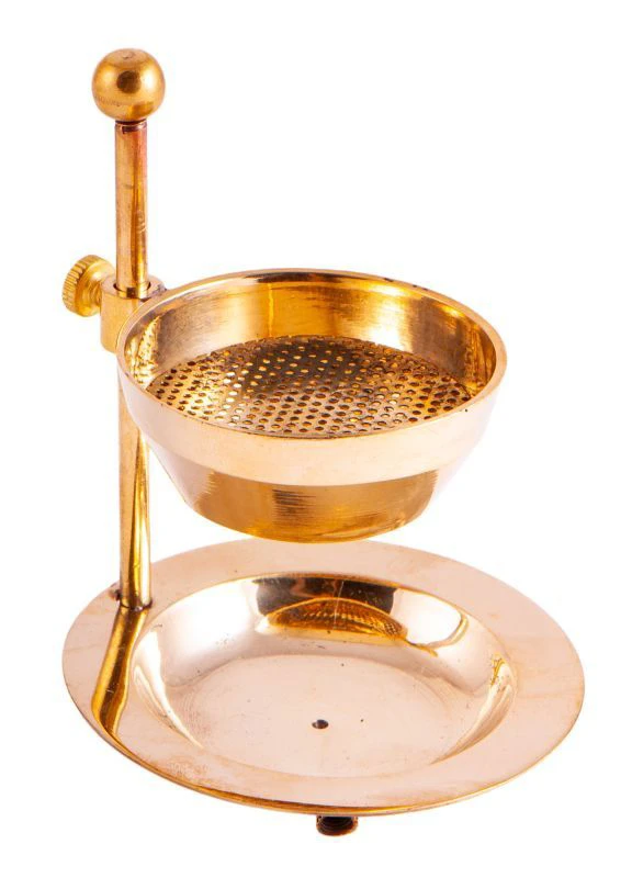 Höhenverstellbares Siebräuchergefäss - Mitra Manche Kräuter brauchen etwas mehr Abstand zum Teelicht als andere. Auch Harze reagieren je nach Härte unterschiedlich. Mit diesem Siebräuchergefäss kann man die Höhe je nach Bedarf variieren und gerne auch experimentieren. Messing, H: 10 cm
