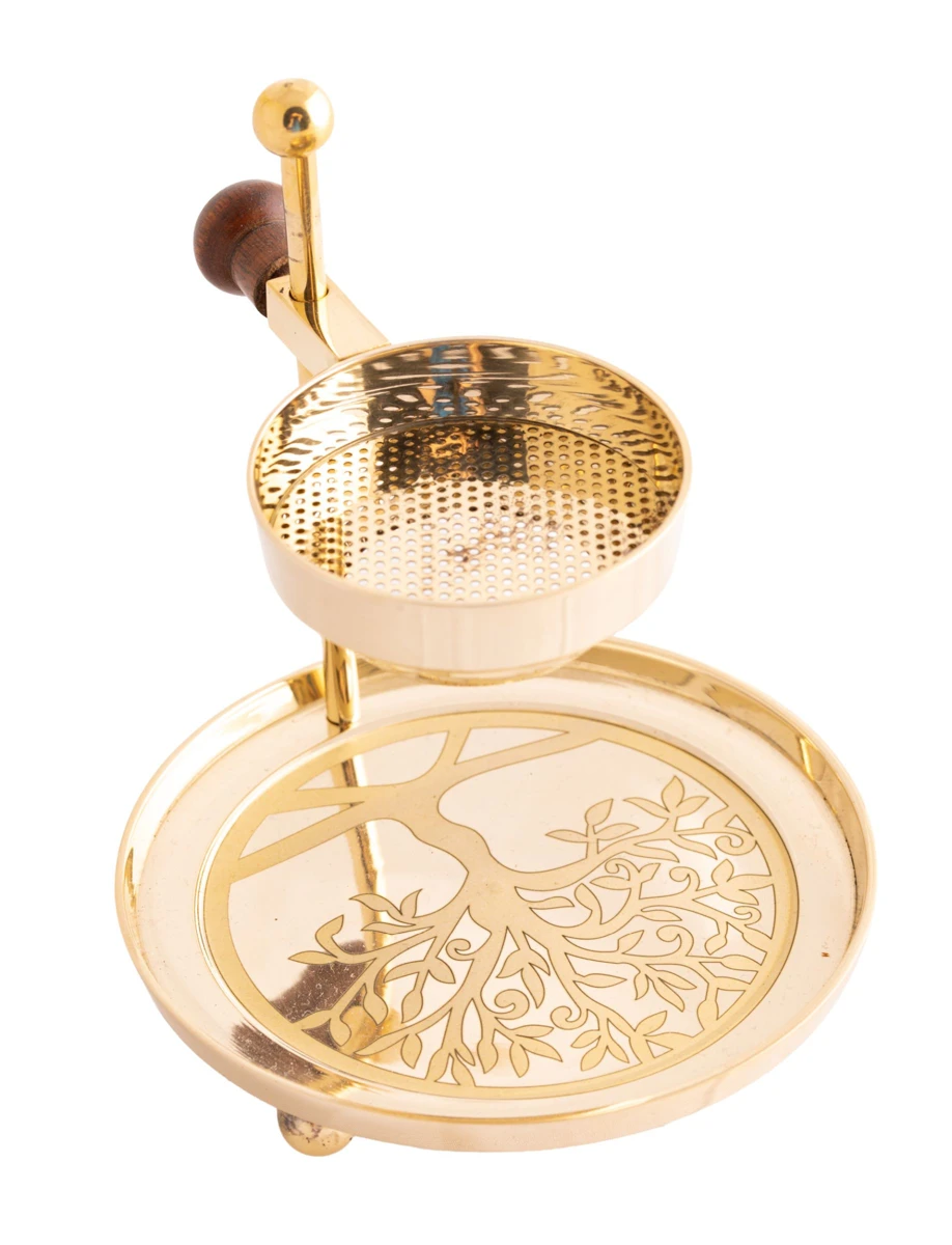 Dieses edle Siebräuchergefäss ermöglicht eine flexible Anpassung des Abstands zwischen Sieb und Teelicht – ideal für unterschiedliche Kräuter und Harze. So lässt sich die Intensität des Räucherns individuell steuern.