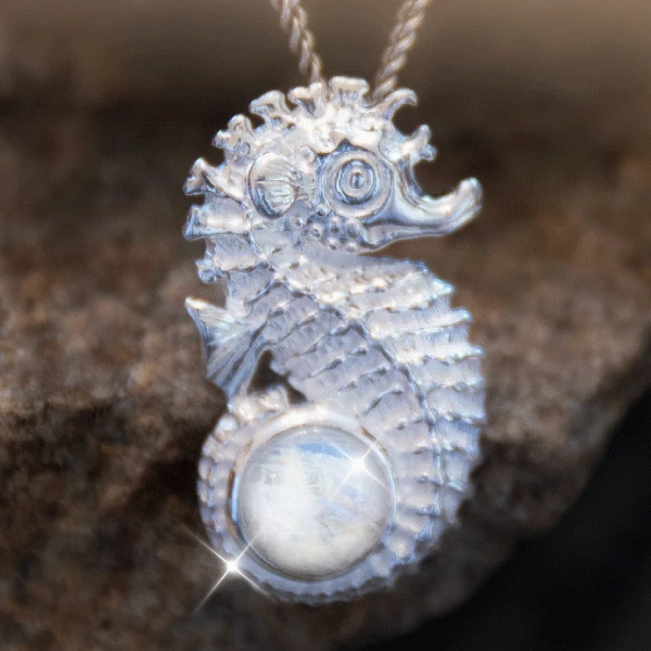 Gleich zwei Glücksbringer vereint dieser verspielte Anhänger aus Silber. Das Seepferd, welches eine wundervolle Mondsteinperle liebkost. Das Seepferd steht als Sinnbild für Harmonie und Ruhe. In Verbindung mit dem Mondstein öffnet es Ihnen Zugang zu Ihrer Intuition. Machen Sie diesen zauberhaften Anhänger zu Ihrem täglichen Begleiter!