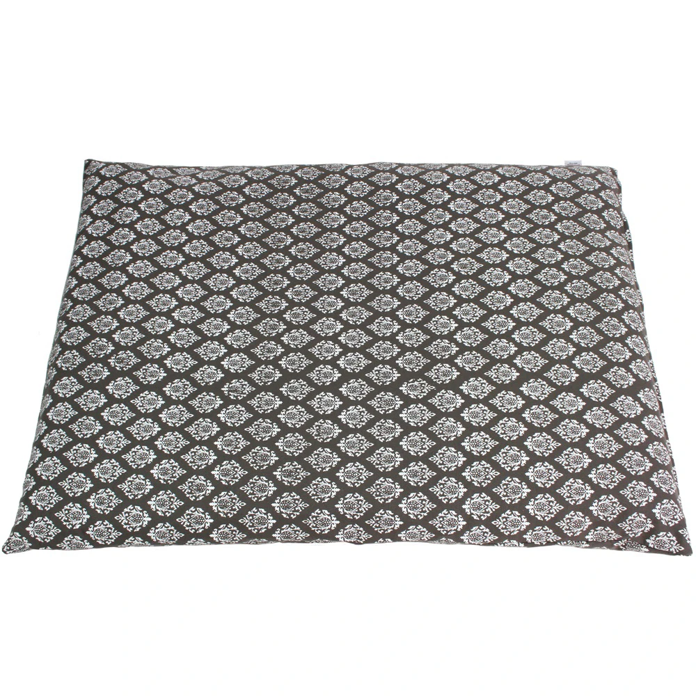 Die Meditationsmatte Raja in beige-grau ist mit einem hochwertigen Bezug aus strapazierfähigem Baumwoll-Canvasstoff versehen, der abnehmbar und bei 30 Grad waschbar ist. Die Bezüge haben auf der kurzen Seite einen halbverdeckten Reissverschluss zum Verschliessen.
