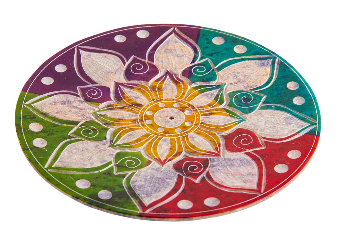 Herrlich bunter Halter mit zartem Mandala in allen Regenbogenfarben.