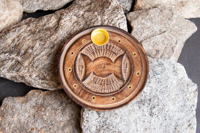 Diese einfachen und günstigen Halter mit dem Sonne- und-Mond-Symbol sind sowohl zum Räuchern mit Räucherstäbchen als auch mit Kegeln geeignet.