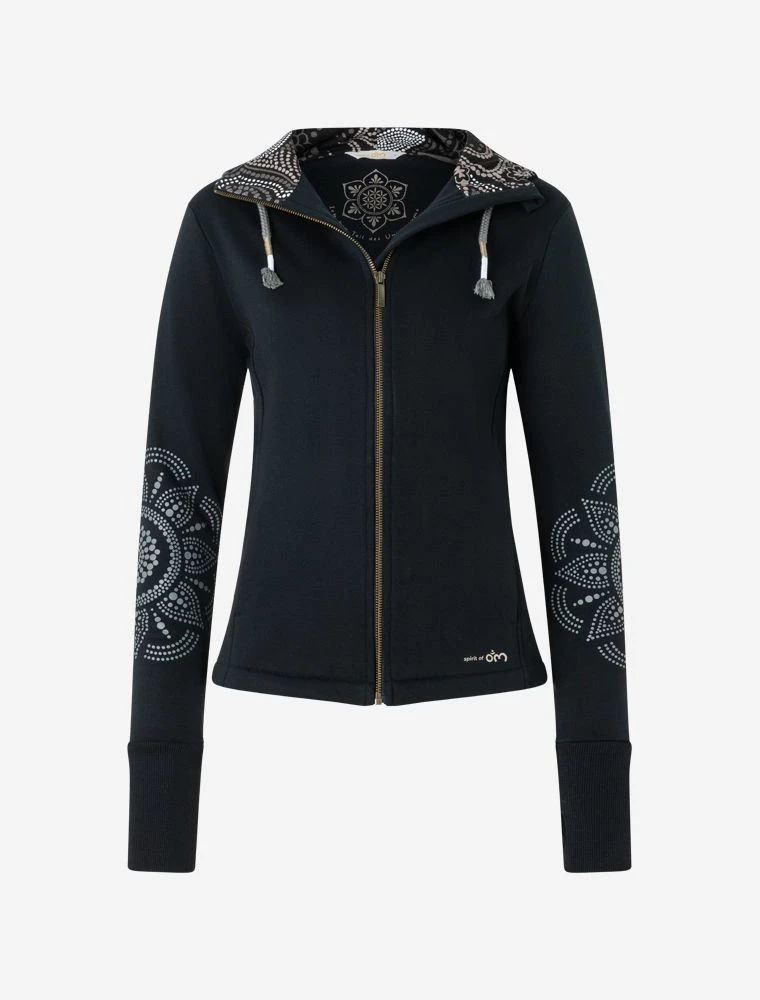 Die Sweatjacke Maui Nava trägt den Namen des Sanskrit-Wortes "Nava" für "Neu" und folgt auf die beliebte Maui Jacke von The Spirit of OM. Ihre anliegende Passform und die eleganten schwarzen Details überzeugen bei Yoga, in der Freizeit und als bequemes Alltagskleidungsstück.