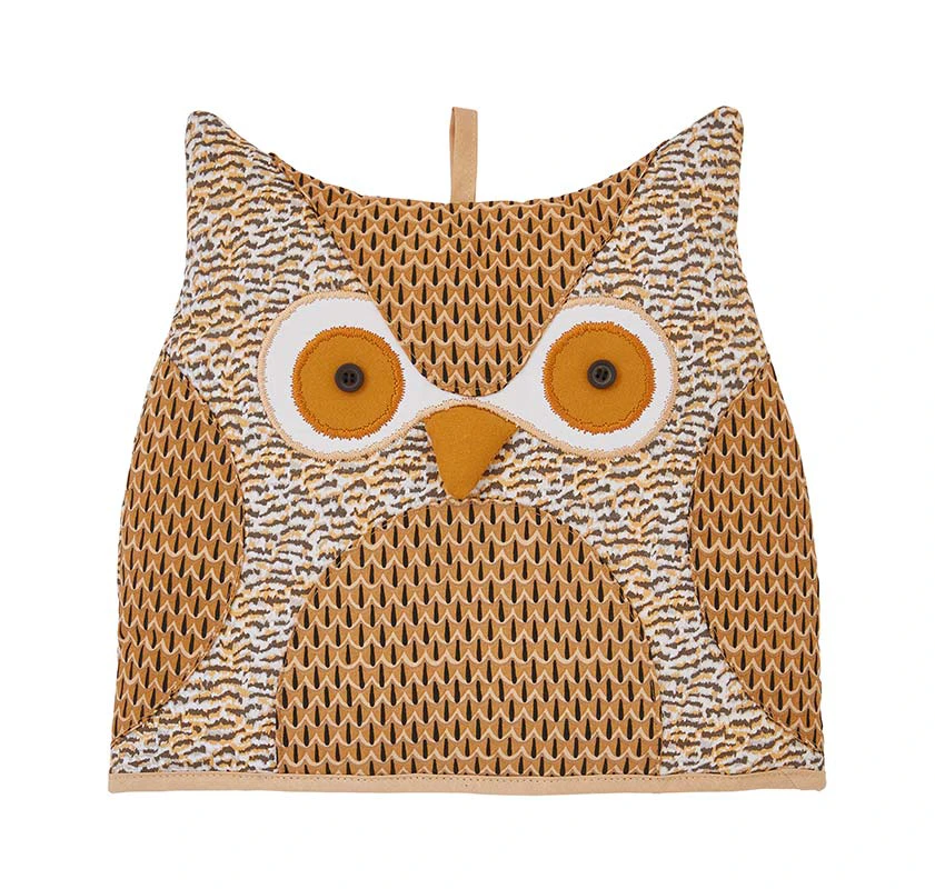 Diese wachsame Eule passt auf, dass niemand den Tee zu früh einschenkt! Der gemusterte Stoff sorgt für einen gefiederten Effekt, während die aufgenähten Knopfaugen und die gestickten Umrisse um die Augen für besondere Details sorgen.