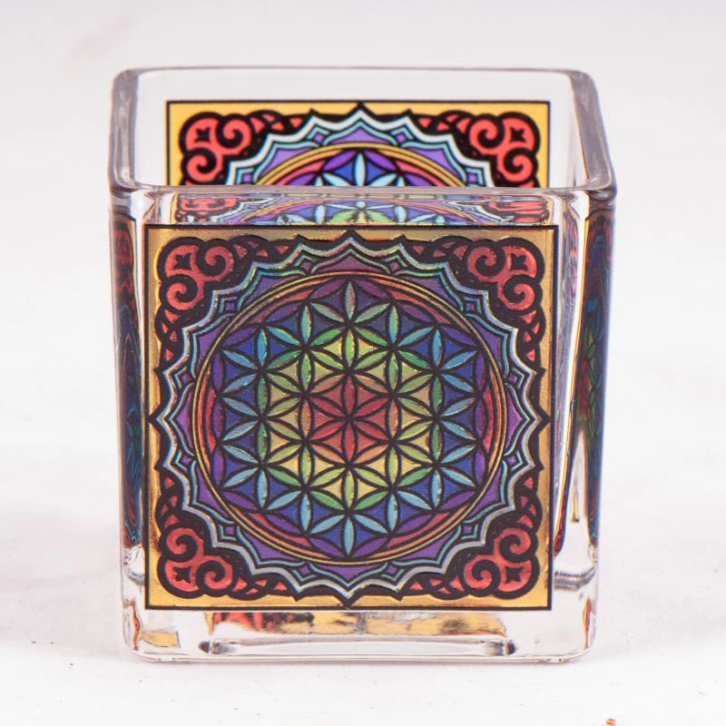 Das Teelichtglas Blume des Lebens ist ein hübscher Teelichthalter aus Glas.