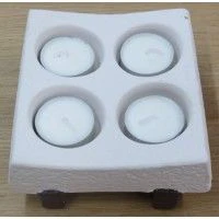 Teelicht Om Lotus Stein graviert weiss/gold 8x8cm