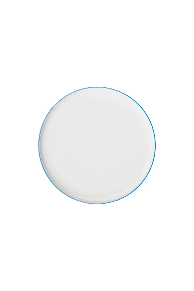 Unser Frühstücksteller mit einem dezenten hellblauen Rand und puristischem Design verbindet Schlichtheit mit zeitloser Eleganz. Hergestellt aus hochwertigem Porzellan, überzeugt er durch seine glatte Oberfläche und klare Linienführung. Die runde Form ist schlicht und unaufdringlich, wodurch der minimalistische Stil perfekt zur Geltung kommt. Ein feiner, gleichmässiger hellblauer Streifen am äusseren Rand verleiht dem Teller eine dezente Farbnote. Der sanfte hellblaue Ton harmoniert wunderbar mit der weissen Fläche des Tellers. Mit seiner idealen Grösse ist er perfekt geeignet, um Frühstücksgerichte stilvoll zu servieren, und fügt sich mühelos in moderne und elegante Tischarrangements ein. Vervollständige deinen Stil mit unseren Lieblingsstücken aus der Serie TINTED GRACE.