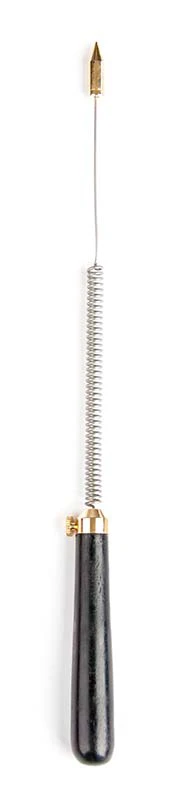 Praktischer Tensor mit spiralförmigem Stahlstab zur Verstärkung, aufgesetzte Messingspitze, Messingschraube zum Verstellen der Rutenlänge, Holzgriff. Lieferung in schöner Geschenkbox.