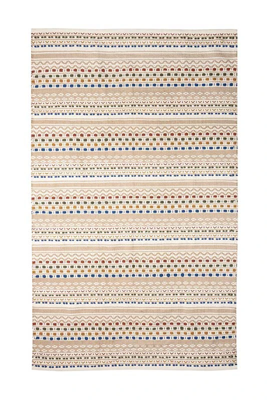 Dieser natürlicher Teppich im gestreiften Design fügt sich wunderbar in jeden Wohnraum ein. Der handgefertigte Teppich aus 100 % Baumwolle erfüllt alle Kriterien, um zum absoluten Lieblingsstück zu werden und sorgt in deinem Zuhause für eine Extraportion Gemütlichkeit.