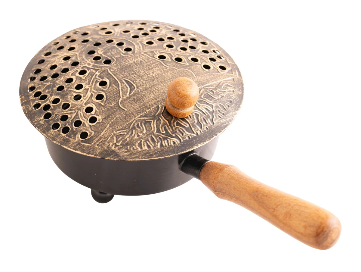 Diese Gefässe eignen sich besonders gut für energetische Reinigungen. Dank des langen Holzgriffs lassen sie sich bequem und sicher durch Wohnräume tragen.