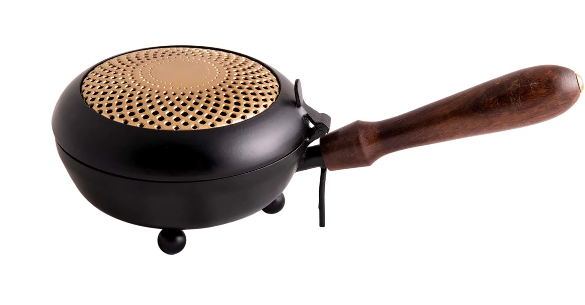 Dieses Gefäss ist ausgesprochen gut geeignet für die Reinigung des Raums und der Aura. Es ist leicht durch die Wohnung zu tragen, dank des langen Holzgriffs. Mit leichten Schwenkbewegungen können Sie sorgfältig die Ecken jedes Raumes räuchern. Bei der Aurareinigung geht man dagegen, mit leichten Schwenkbewegungen von unten nach oben, um die Person herum und fächelt ihr/ihm die Rauchfahnen zu.