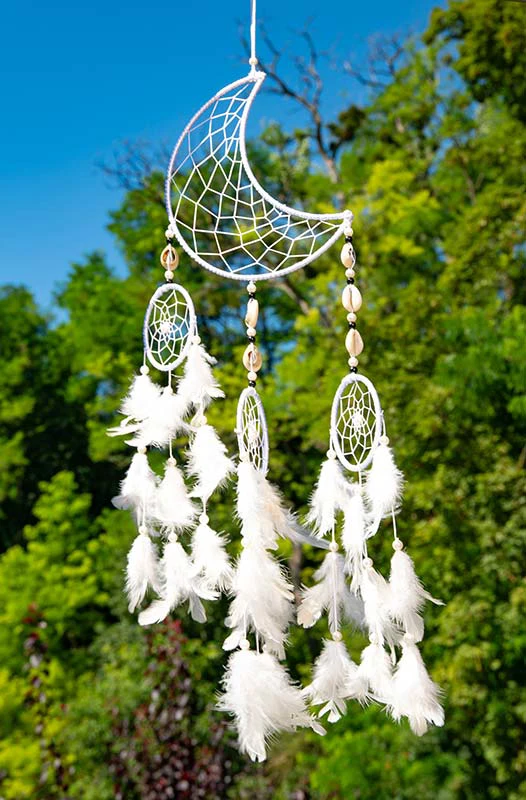 Der Legende nach wurde die Idee des Traumfängers den amerikanischen Ureinwohner*innenin Visionen übermittelt. Gesponnen wie das Netz einer Spinne, agiert der Traumfänger als Filter, der negative Gedanken und Träume von den Guten trennt und nur das durchlässt, was uns Menschen hilft, ungehindert den für uns richtigen Weg zu gehen. über dem Bett wirkt er als kraftvolles Schutzsymbol, an der Wand befestigt zieht er das Chi an und frei im Raum schwebend lenkt und verteilt er es.